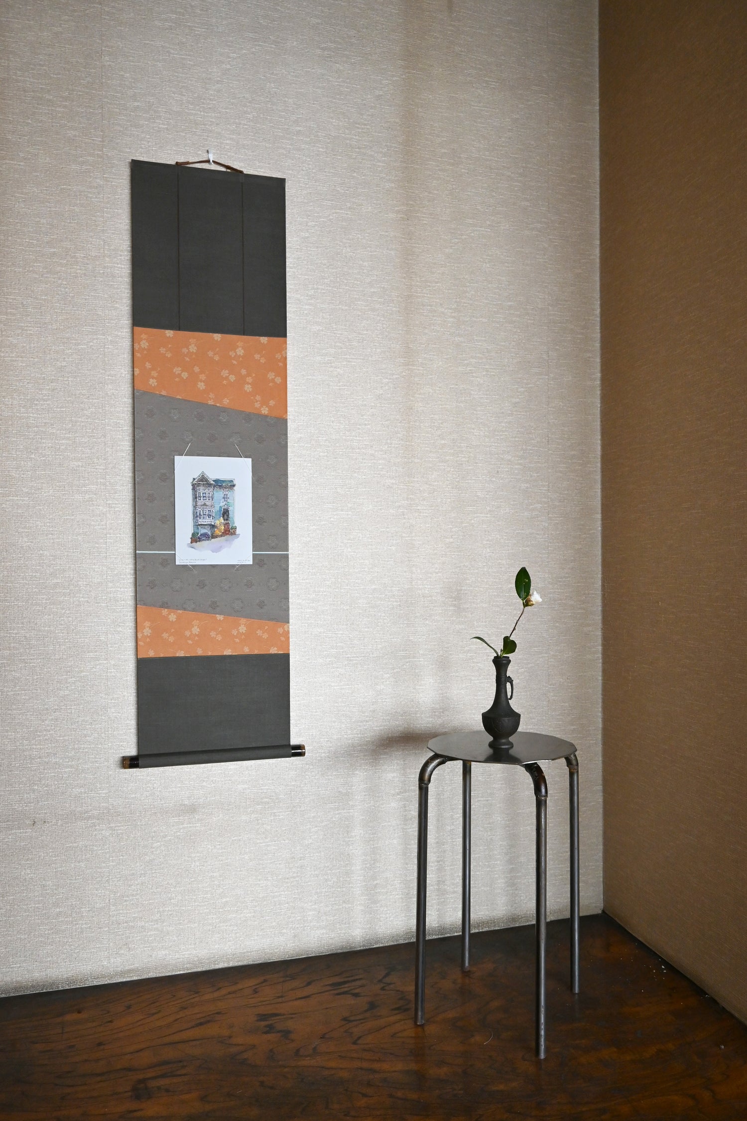 You can pick one original painting with this Japanese traditional hang scroll "Kakejiku"